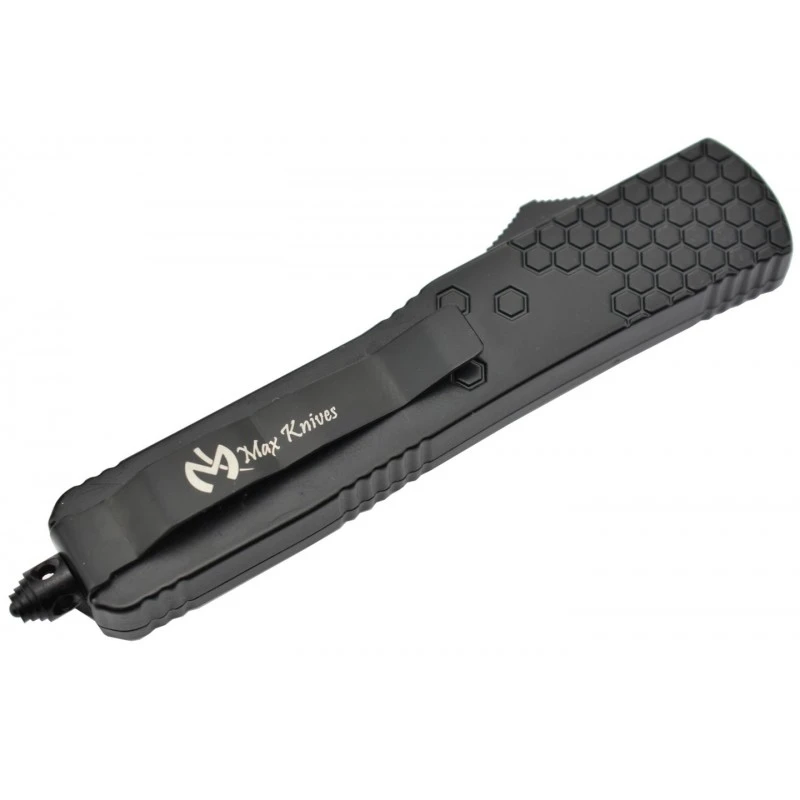 Un couteau automatique OTF au style percutant, voilĂ un bref rĂ©sumĂ© du Max Knives MKO45. Ce dernier est muni d’un manche en aluminium noir qui a la particularitĂ© d’ĂŞtre dĂ©corĂ© de motifs nid d’abeille sur la partie proche de la lame. Très agrĂ©able Ă tenir en main, la poignĂ©e en aluminium est multifonctions puisqu’elle intègre un trou pour dragonne, un clip de ceinture pour le transport ainsi qu’un brise-vitre pour les situations urgentes. Pour information la longueur du manche est de 13cm, livrĂ© avec un Ă©tui cordura adaptĂ©.