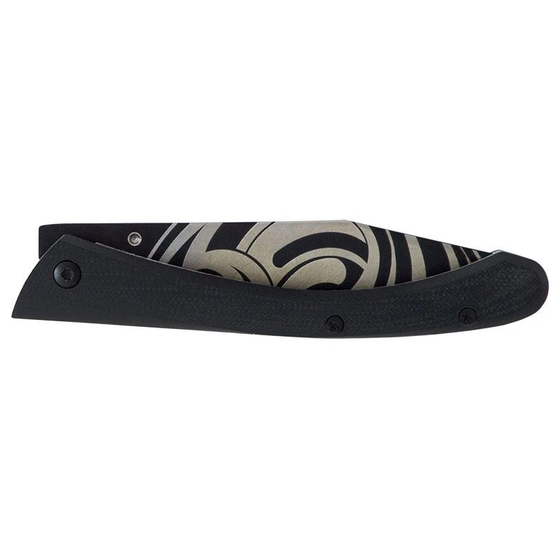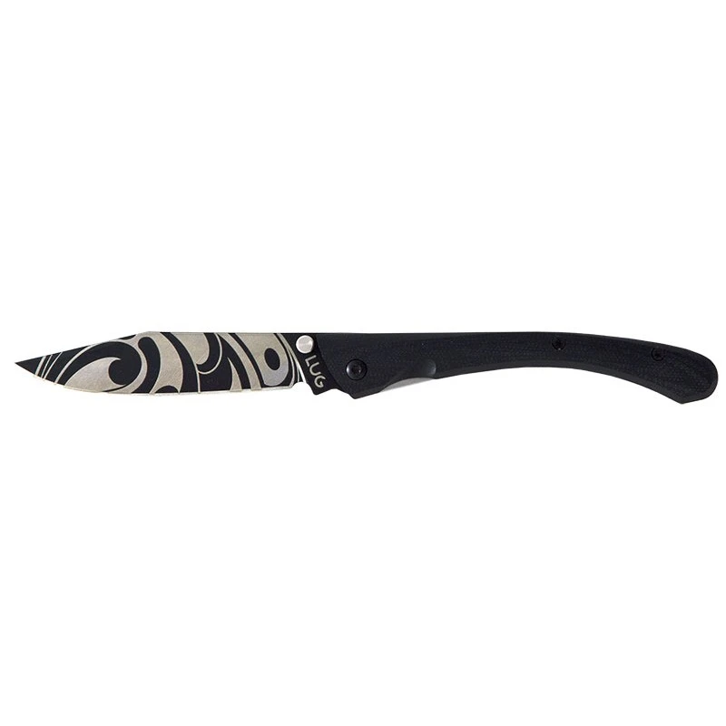 DesignĂ© et assemblĂ© en France par LUG, ce couteau C63 Tattoo LUGART possède un manche en acier inoxydable et G10 noir usinĂ© de façon remarquable. Sa forme est particulièrement harmonieuse, son ergonomie est Ă©galement excellente. Sa longueur de 115mm couplĂ©e Ă un poids plume de 80 grammes font que ce couteau se transportera sans encombre au quotidien. D’autres motifs sont disponibles pour la collection LUGART Limited.