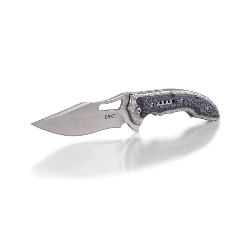 Ce couteau CRKT Fossil Compact est doté d’une lame à trou en acier 8Cr13MoV satiné avec flipper et cran intérieur. Le manche du couteau est quant à lui fabriqué en inox martelé avec plaquettes en G10 gris/noir et clip : il mesure 11cm de longueur. Ce couteau CRKT Fossil Compact intègre également le système IKBS pour l’ouverture de la lame.