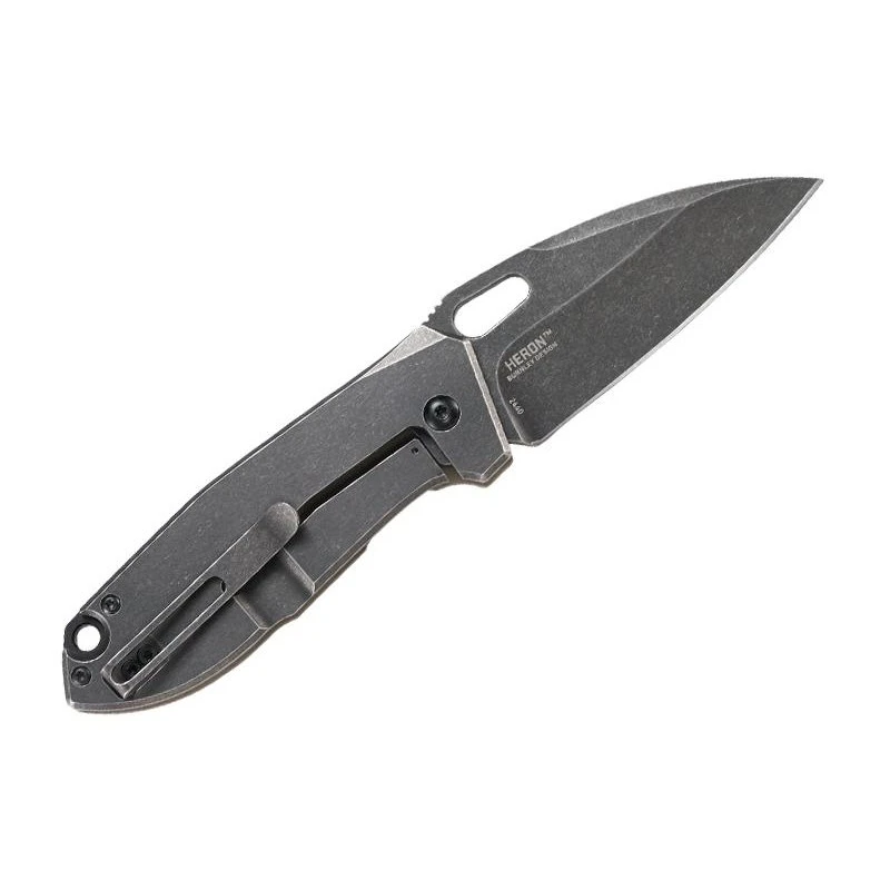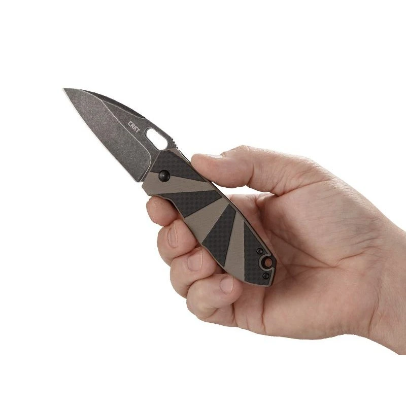 Il porte le nom d’un oiseau, c’est le CRKT Heron ! Ce couteau de poche est conçu par le cĂ©lèbre designer Lucas Burnley d’Oregon. La première chose que l’on remarque, c’est son manche en G10 beige avec inserts en fibre de carbone au recto. Il s’agit de grosses rayures avec Ă chaque fois une alternance de couleurs, cela peut par exemple faire penser aux rayons du soleil, Ă la nature, chacun est libre d’interprĂ©ter cela comme il le dĂ©sire. Au verso, la poignĂ©e est fabriquĂ©e en acier inoxydable, il y a aussi un clip de poche ainsi qu’un passe-lacet afin de rendre la transportabilitĂ© excellente. Le couteau pliant CRKT Heron est dotĂ© d’une lame Ă trou de 74mm de longueur, fabriquĂ©e en acier 8Cr14MoV, elle est de type wharncliffe. La finition est de type stonewashed ce qui permet Ă la lame de bien vieillir, mais aussi de masquer les rayures du quotidien. Fente pour le pouce afin de pouvoir ouvrir la lame Ă une main.