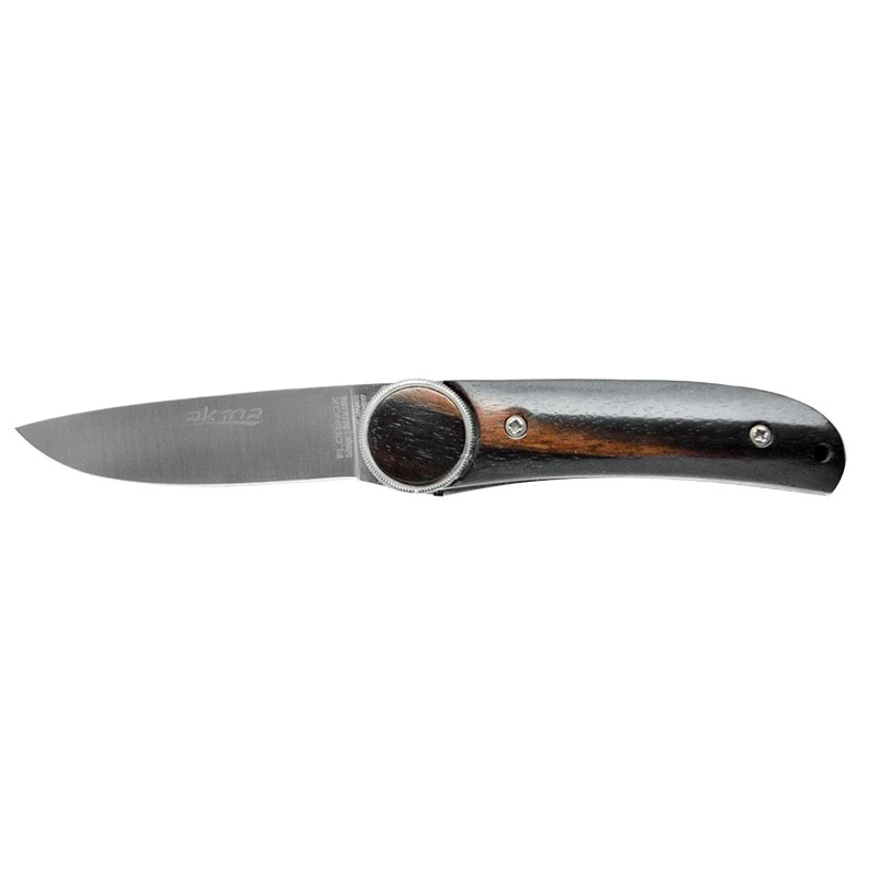 Une allure des plus élégantes, originales pour ce couteau Florinox, modèle Akma. Une création du designer Denis Lemaire qui ne passera jamais inaperçu en raison de son manche en bois ébène, légèrement grisâtre sur le dessus pour la note stylée. Une poignée confortable à manier, qui mesure exactement 10cm de long afin de pouvoir transporter avec aisance son couteau Florinox Akma au quotidien. Le trou pour lanière ou passe-lacet situé en bout de manche renforce davantage la facilité de port.