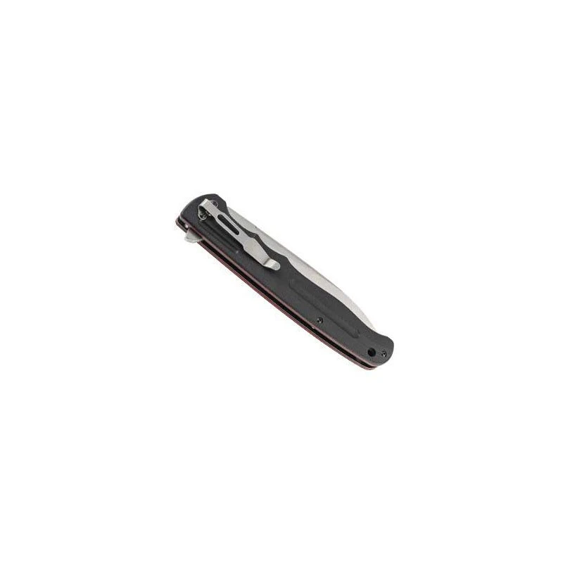 Ce couteau Herbertz 591217 n’a pas fini de vous impressionner, notamment en raison de son gabarit imposant (lame de 135mm, manche de 165mm). Pliant, ce modèle est équipé d’une lame Sheep Foot semi-dentée en acier inoxydable 440, avec flipper, mécanisme ball bearing et cran intérieur. Très facile à ouvrir, elle assure une très grande polyvalence quotidienne avec un tranchant à toute épreuve : possibilité de la graver sur les deux faces (voir bouton ci-dessous). Ce couteau Herbertz 591217 possède aussi un grand manche conçu en G10 noir avec intercalaires rouges, il y a un clip au dos pour garantir la facilité de déplacement. La poignée est de forme ergonomique assurant ainsi une prise en main toujours très confortable. La bonne nouvelle, c’est que ce grand couteau pliant Herbertz est vendu avec son étui de protection en nylon noir. De quoi assurer une parfaite protection au quotidien ! Ne vous laissez pas impressionner par sa grande taille, ce couteau pliant Herbertz 591217 pourra être sans problème votre plus fidèle compagnon d’aventures !