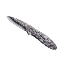 Voilà un couteau Herbertz qui risque d’en effrayer plus d’un. De référence 564612, il est doté d’un manche de 11.5cm de longueur en acier inox décoré de têtes de mort avec revêtement titane et clip. La lame est elle fabriquée en acier inox 420 à cran intérieur : elle est très tranchante.