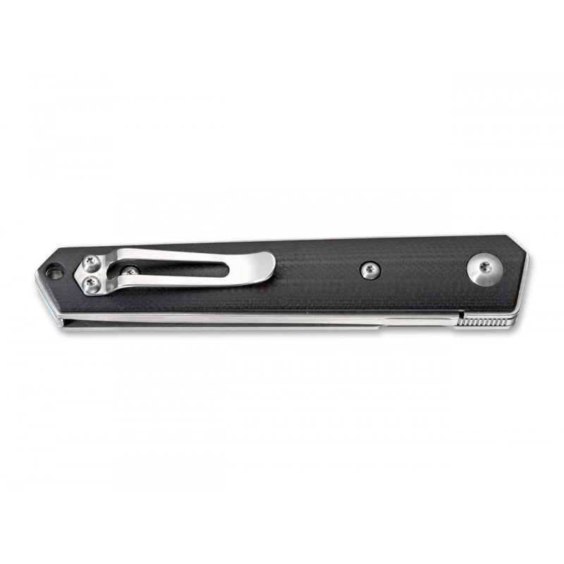 Le manche du couteau Böker Plus Kwaiken Mini Flipperless est en G10 noir pour un style sobre et une prise en main toujours très agréable. Grâce au clip réversible, la facilité de transport est renforcée, de toute manière le couteau ne mesure que 105mm en position refermée.