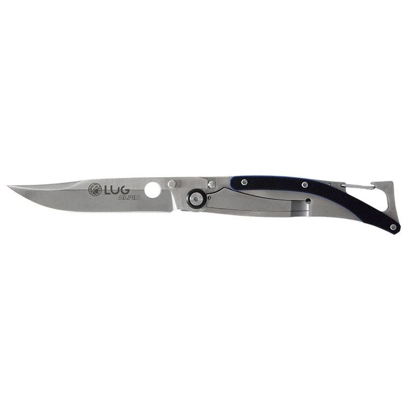 Vivez vos aventures à 100%, et avec élégance à l’aide du couteau ALPIN de la marque Française LUG. Extrêmement moderne, ce couteau pliant est caractérisé par un manche bi-matière en acier inoxydable ainsi que G10 noir avec contour bleuté. Le petit détail qui fait la différence en matière d’esthétisme ! La poignée assure une simplicité de transport au quotidien : de longueur 11cm, elle intègre un mousqueton ainsi qu’un clip de poche au dos.