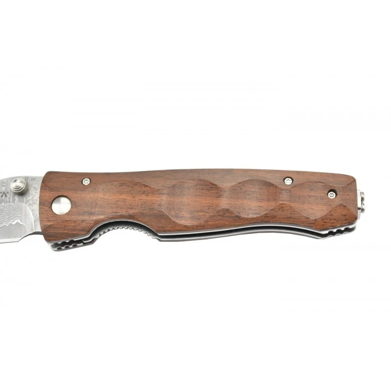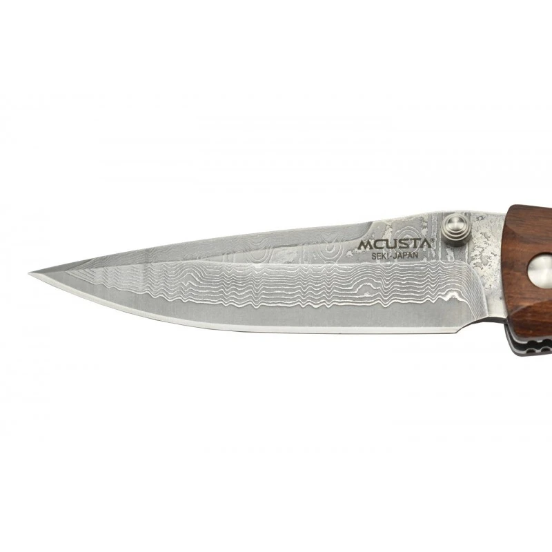 Ce couteau Mcusta MC-125D est muni d’une lame en acier inox Damas, avec le logo Mcusta en guise de dĂ©coration (Seki Japan). Il faut mentionner la prĂ©sence d’un double thumb stud facilitant grandement l’ouverture de la lame, le système de verrouillage est de type liner lock. Pour information, la lame damas mesure 93mm de longueur et comporte un bout pointu, elle est extrĂŞmement tranchante. Couteau pliant Mcusta fabriquĂ© Ă Seki au Japon.