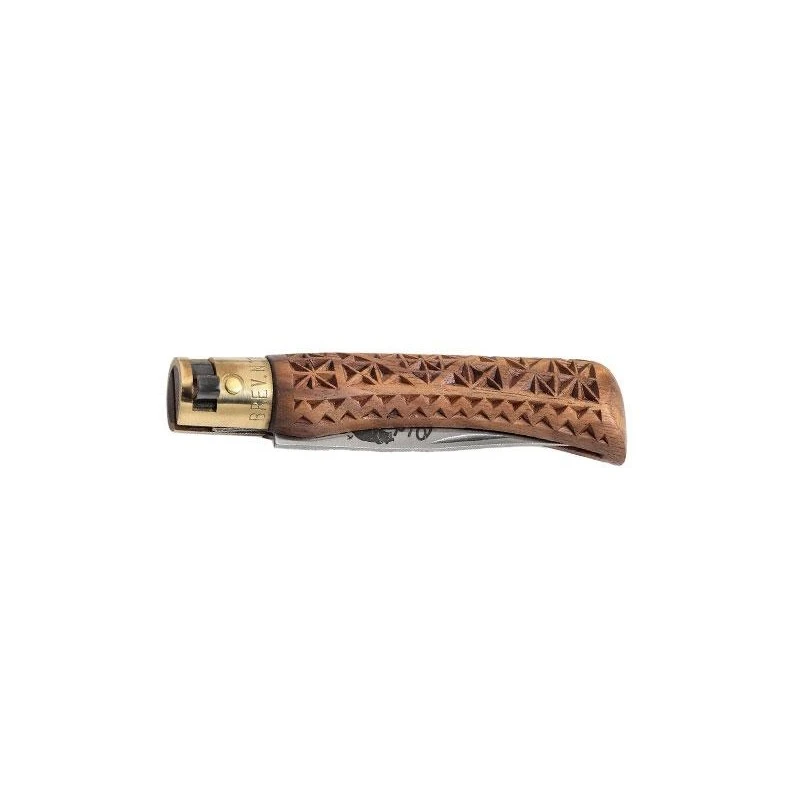 Fabriqué artisanalement en Italie, à Maniago, ce couteau de poche est simple à emporter du fait qu’il ne mesure que 11cm de long une fois fermé. L’avoir toujours sur soi est un jeu d’enfant. Au bout du manche, à proximité de la lame, se trouve une virole de sécurité en laiton qui comme son nom l’indique, vient sécuriser les utilisations mais aussi les transports. Avec elle, aucune chance que la lame ne vienne s’ouvrir par inadvertance durant un déplacement ! Mesurant 8cm de long, cette dernière est faite d’acier trempé 420 satiné, elle s’ouvre sans difficulté via l’entaille nail nick.