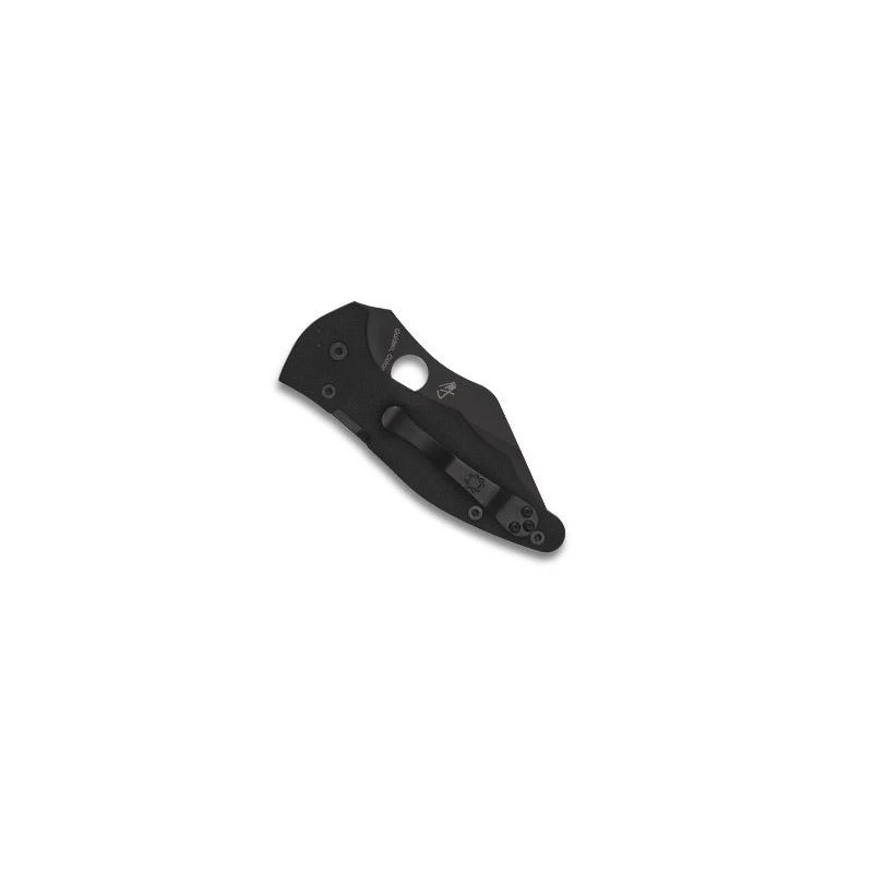 Le Spyderco Yojimbo All Black (rĂ©fĂ©rence C85GPBBK2) est un couteau Wharncliffe tactique conçu par Michael Janich. Son design tout noir ne vous laissera surement pas indiffĂ©rent, tout comme sa lame de 81mm de long, en acier inoxydable CPM-S30V recouverte d’un revĂŞtement DLC (Diamond like Carbone). DotĂ©e du mĂ©canisme Compression Lock et d’un profil Ă©vidĂ©, la lame noire est bien sĂ»r ajourĂ©e, comme toujours avec la marque AmĂ©ricaine Spyderco, ainsi que dĂ©corĂ©e par le logo du fabricant. On peut apercevoir, plus discrètement, l’inscription « Spyderco CPM S30V » en rĂ©fĂ©rence au type d’acier utilisĂ© pour la lame.