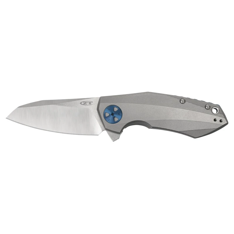 Le couteau Zero Tolerance 0456 est le rĂ©sultat d’une collaboration entre la marque ZT et le fabricant de couteaux Dimitry Sinkevich. C’est un modèle pliant muni d’une lame de longueur 83mm fabriquĂ©e en acier CTS-204P de très haute qualitĂ© qui rĂ©siste Ă la corrosion. D’ailleurs, la lame est Ă©galement marquĂ©e du logo ZT en gris. Le manche lui est conçu en titane avec finition stonewashed : il est extrĂŞmement design et possède une excellente ergonomie : il tient très bien en main. Le couteau Zero Tolerance 0456 Sinkevich s’ouvre avec le système de roulement Ă billes KVT, de quoi pouvoir ouvrir la lame avec rapiditĂ© et efficacitĂ© au quotidien. Les poignĂ©es en titane sont Ă©galement dĂ©corĂ©es par un pivot en aluminium. Ce couteau de poche intègre un clip de poche rĂ©versible bleu marquĂ© une fois de plus par le logo de la marque Zero Tolerance.