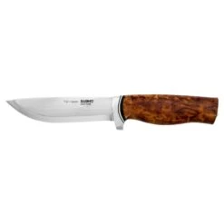 Le poignard Helle GT H036 est muni d’un manche fabriquĂ© en bois bouleau et mesure un peu plus de 12cm de longueur. Une poignĂ©e Ă©lĂ©gante et surtout confortable Ă manipuler, afin d’exĂ©cuter des gestes Ă haute prĂ©cision. La demi-garde permet une utilisation du poignard en toute sĂ©curitĂ©, par exemple lors des utilisations en extĂ©rieur pour la chasse ou plus globalement l’aventure. Montage avec soie traversante, garde en aluminium afin de rĂ©duire le poids du couteau fixe qui de 150 grammes.