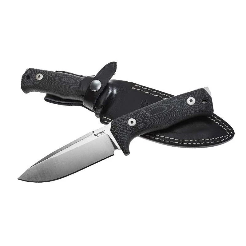 Conçu par le designer Michele Pensato aka « Molletta« , ce poignard LionSteel T5 est muni d’un manche très ergonomique conçu en micarta gris/noir. Un manche qui est fabriqué à partir de la technologie SOLID (manche monobloc taillé en centre d’usinage à partir d’une seule pièce de matière). Pour information le manche gris/noir en micarta mesure environ 12,5cm de longueur. La lame de ce poignard LionSteel T5.MI est conçue en acier Niolox satiné, elle mesure 13cm de longueur et peut être personnalisée par gravure. À noter qu’elle est discrètement décorée par le logo LionSteel au niveau de la face avant. Ce couteau à lame fixe LionSteel T5 micarta gris/noir mesure donc au total plus de 25cm de longueur. Un grand poignard de haute qualité qui fera le bonheur des chasseurs, passionnés de bushcraft ou autres activités Outdoor. Livré avec son étui en cuir noir à double coutures.