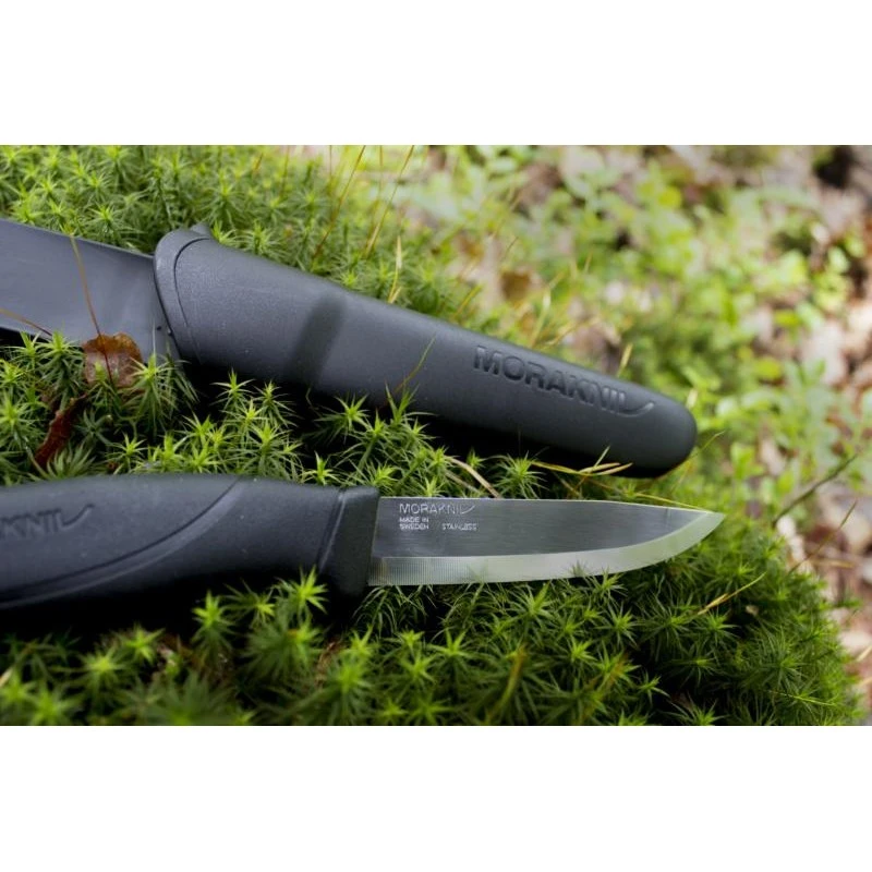 Le Mora Companion est un poignard qui porte très bien son nom, car il sera justement un excellent compagnon pour toutes vos aventures quotidiennes. Un couteau à lame fixe (longueur 105mm et bout pointu) qui conviendra aussi bien pour les utilisateurs expérimentés que pour la jeune génération. Ce poignard Mora Companion 12141 excellera en bons nombres de situations : chasse, bushcraft ou même pour les activités de plein air. Vous apprécierez également son manche noir en gomme marqué par le nom du fabricant Suédois Morakniv. Un manche ergonomique qui assure une excellente stabilité au quotidien (excellente tenue en main), de plus, ce matériau a l’avantage de ne pas conduire le froid. Poignard Mora Companion noir livré avec son étui rigide noir avec clip pour l’accrocher facilement à un sac à dos ou une ceinture. Un rapport qualité/prix difficilement égalable !