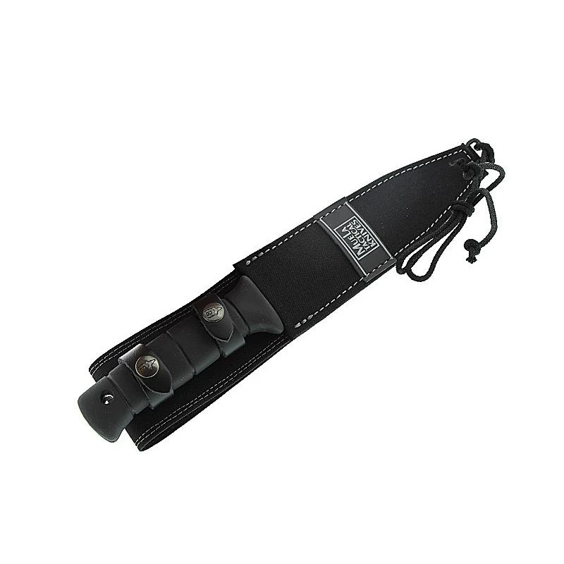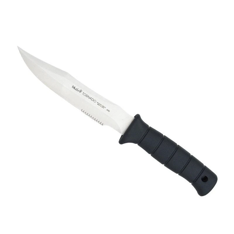 Ce poignard de chasse Muela Tornado 9202 se dote d’un manche noir avec stries verticaux : il est au summum de l’Ă©lĂ©gance mais aussi de l’ergonomie avec une prise en main des plus confortables. Mais ce modèle, ce n’est pas qu’un manche, c’est aussi une grande lame de 18cm en acier inoxydable. Une lame semi-dentĂ©e, c’est Ă dire Ă la fois lisse et dentĂ©e pour une grande polyvalence au quotidien. Robuste et tranchante, la lame est d’ailleurs marquĂ©e sur la face avant par le texte « Muela Tornado« . Notez bien qu’il vous est possible de personnaliser la lame sur les deux faces (voir bouton ajouter une gravure). Le poignard Muela Tornado est livrĂ© avec son Ă©tui cordura en nylon. Un modèle idĂ©al pour les chasseurs !